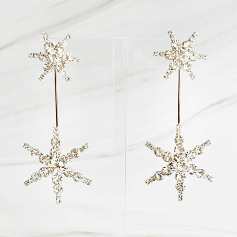 Infuse any outfit with a touch of elegance with our Double Starburst Statement Earrings. These stunning earrings feature a beautiful, sparkly starburst design that is sure to make a statement. Perfect for special occasions, these earrings will elevate your look and add a touch of glamour to any outfit. Dimensions: approximately 1.5” x 3” 18k gold plated brass.