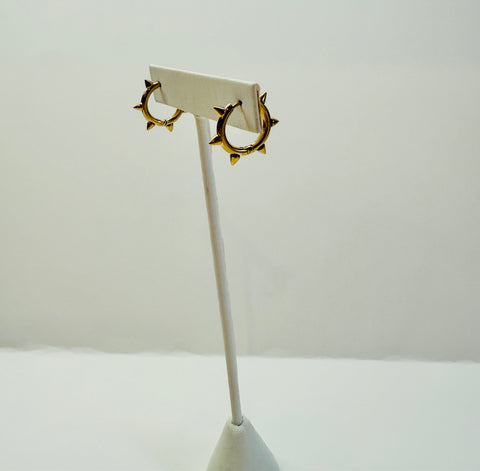 Elevate your style with these 18k gold-plated small hoop earrings, elegantly crafted over durable stainless steel. Featuring delicate tiny spikes, these huggie earrings offer a refined edge to any ensemble, blending subtle sophistication with a modern twist. Perfect for adding a touch of boldness while maintaining everyday wearability.