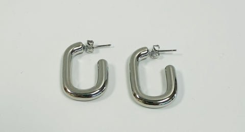 Elevate your everyday elegance with these striking rectangle hoop earrings. Crafted with a plated silver finish over brass, they feature a bold, chunky design that makes a refined statement without overwhelming your look. The generous size and geometric silhouette complement both casual and formal ensembles, while the quality construction ensures lasting wear. A timeless piece that bridges minimalist sophistication with contemporary edge.