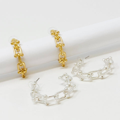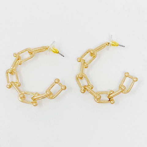 This unique chain links earring is so classy and stylish in perfect size for everyday or any occasions. Dimensions: approximately 1.5” x 1.5” x 0.2” Alloy metal, worn gold finish.