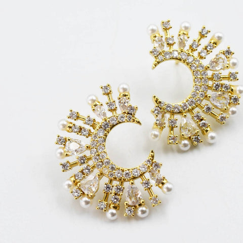 Elevate your evening look with these stunning half-circle earrings, where lustrous gold plating meets an array of shimmering crystals. Each piece catches the light beautifully, creating a radiant sparkle that commands attention without overwhelming your style. Perfect for nights out, special occasions, or whenever you want to add a touch of glamour to your ensemble. The refined design balances boldness with elegance, making these earrings a versatile addition to your jewelry collection.