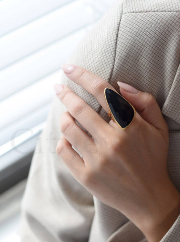 Elevate your everyday elegance with this striking statement ring. Featuring a substantial natural blue chalcedony stone in soothing blue-green tones, this piece is finished with luxurious gold plating for a refined, contemporary aesthetic. The generous stone commands attention while maintaining an understated sophistication, making it perfect for layering or wearing as a standalone focal point. A timeless addition to any jewelry collection that seamlessly transitions from day to evening wear.