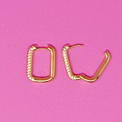 Gold Rectangle Huggie Earrings, Sku#J347
